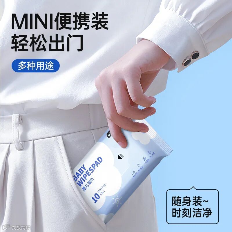 这种mini装的小巧便携,出行时带上一包给宝宝擦脸擦手,用完直接一扔,不用妈妈们费力清洗!