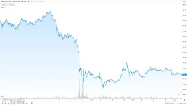 比特币年初的价格在7195美元左右,而以太坊的价格则只有129美元,与两年前的历史最高点相比,下跌了91%。