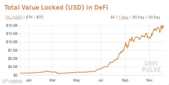 DeFi在年初的时候,TVL只在6亿多美元。直到夏天,这一领域才真正开始飞速发展。