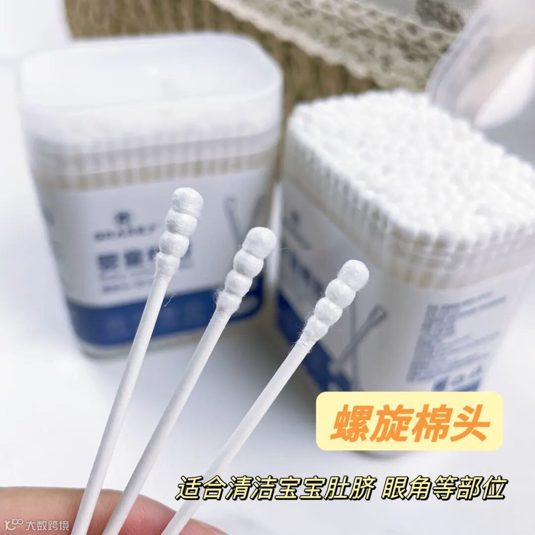 “螺旋头”适用于宝宝吸附耳道或鼻腔污物以及日常肚脐、伤口清洁肚脐等部位,优质棉头是不会掉絮脱落的哦~
