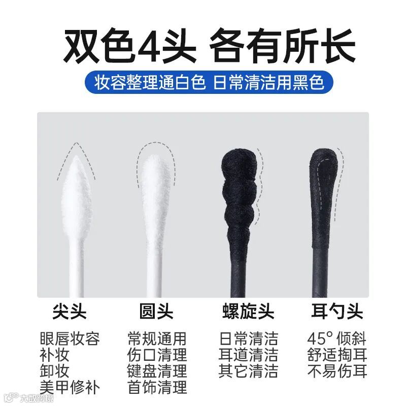 一共有四种针对性的棉头设计,完全满足不同需求,平时化妆、掏耳朵、擦药什么的都用得到,家中常备~