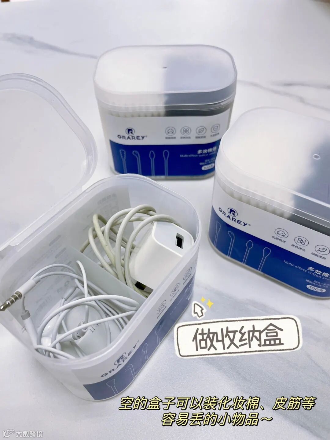 用完的棉签盒别急着丢,用来收纳数据线、化妆棉都超方便~