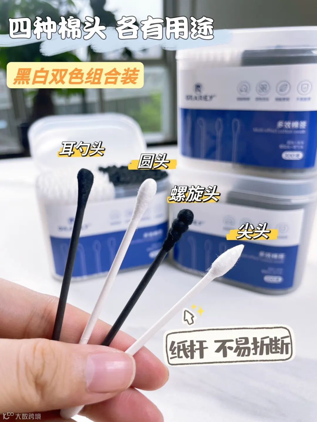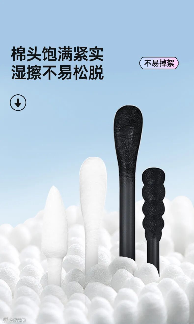 此外,为了使清洁效果更上一层楼!这款多效棉签还特别采用了双头螺旋设计,能够清洁到隐藏于细缝角落的污垢,做到360°深度清洁,且黑色也让污渍更明显一眼可见