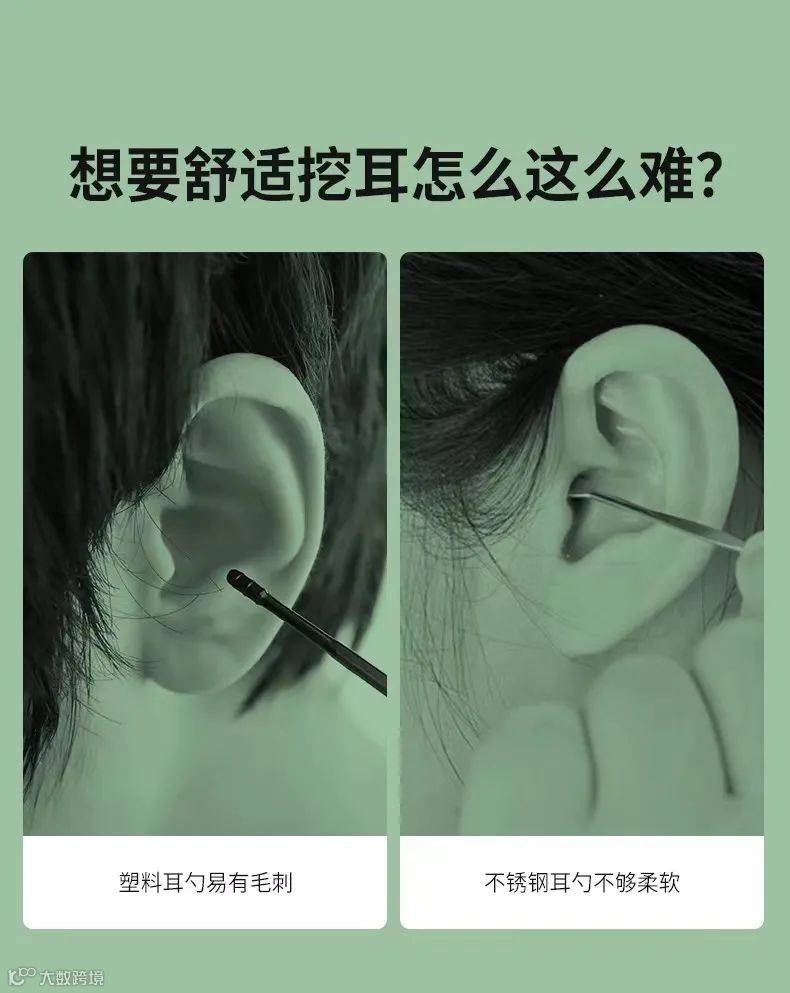 耳勺头顾名思义就是用来掏耳朵的,对比金属掏耳勺更柔软舒适,不易伤耳!