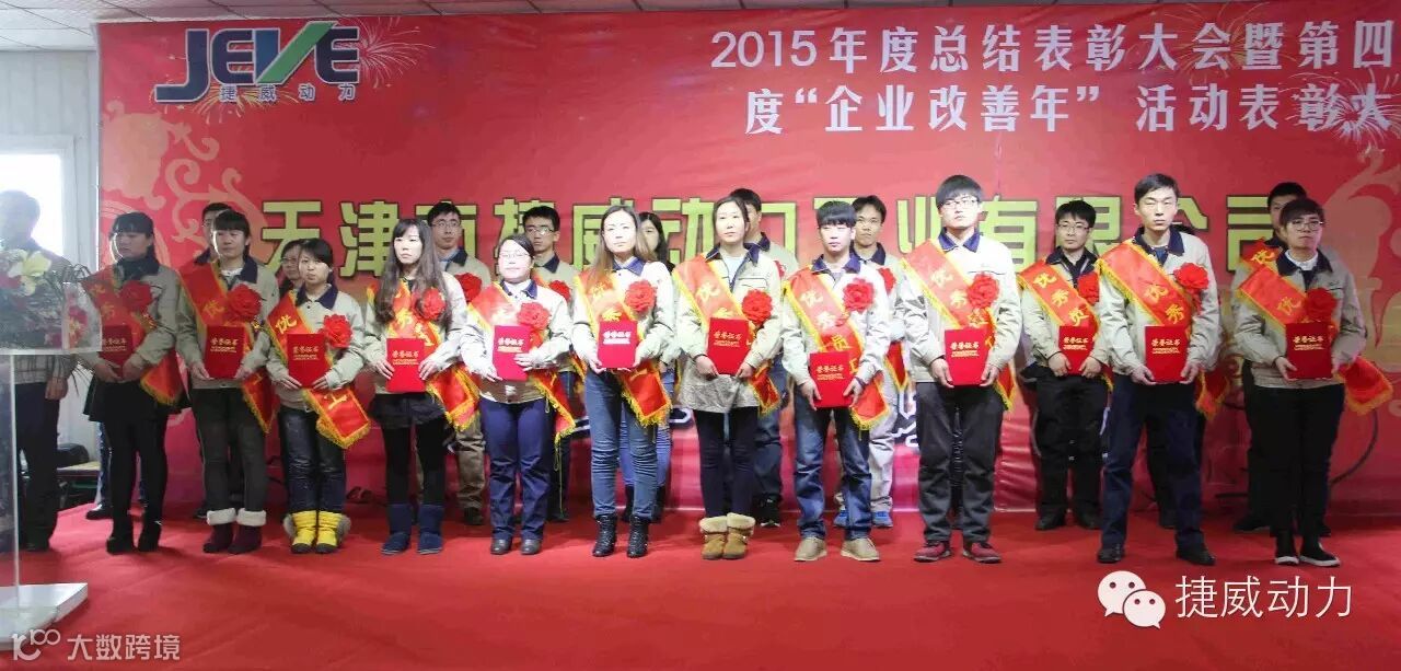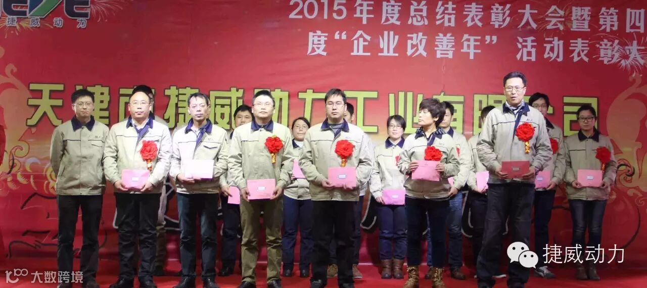 1月25日下午,捷威动力2015年度总结表彰大会暨第四季度“企业改善年”活动表彰大会隆重召开,本次年度总结大会以“改善●腾飞”为主题,旨在表彰先进,激励士气,鼓舞干劲,以更加扎实的工作作风,更加务实的工作态度,动员全体员工进一步开拓进取,奋力拼搏,确保全面完成2016年年确定的各项目标任务。