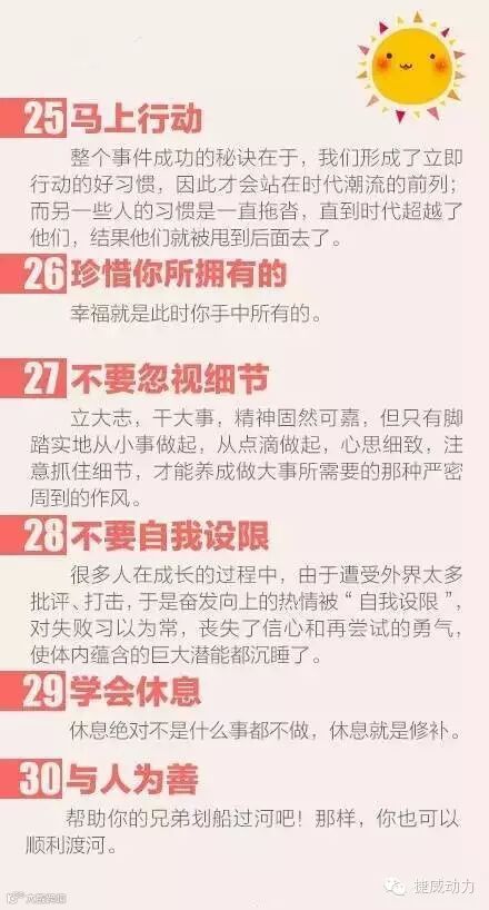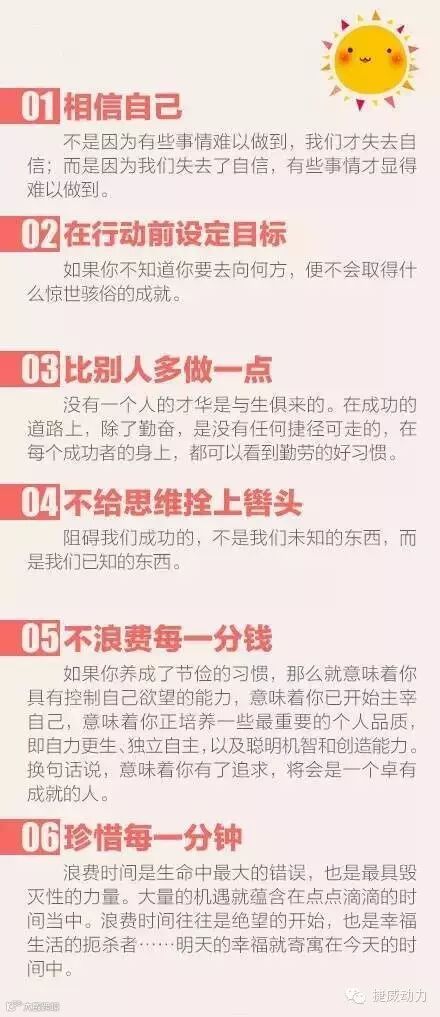最公平,把它洒在哪里,收成就在哪里。只要决心行动, 生活一定会看到那个足够努力的你。为您送上50个走向成功的习惯,只愿您告别2015,在2016的当下,新年新气象,实现开门红、迈向高水平!!!!