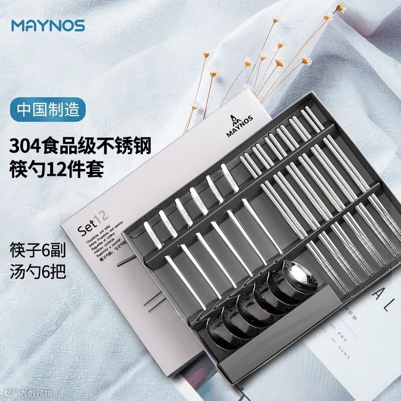 【MAYNOS 304不锈钢筷勺12件套餐具】