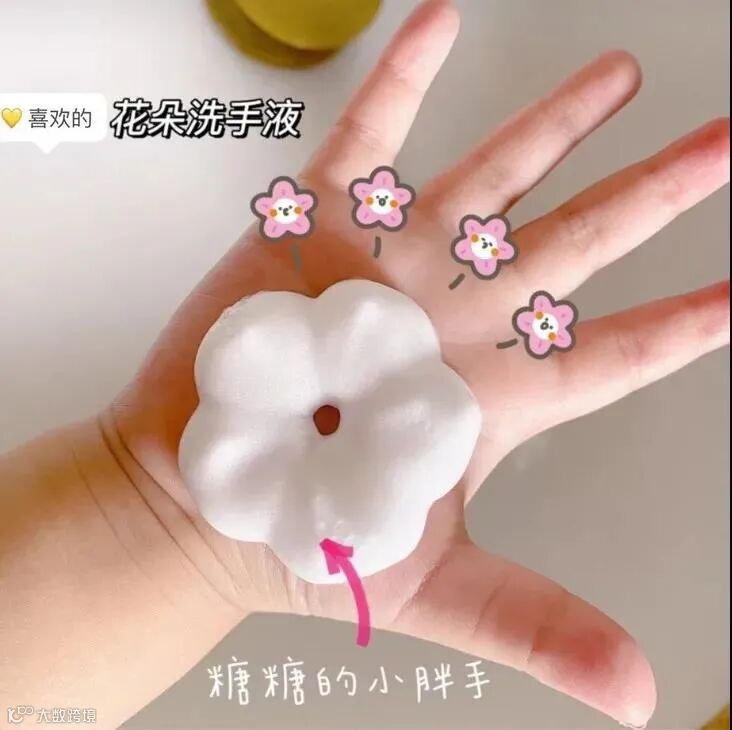现在推荐一款专为儿童设计的名叫花朵泡泡洗手慕斯,顾名思义这是一款有泡泡的洗手慕斯,宝宝对水的恐惧是与生俱来的,如何让宝宝不在对水产生排斥。