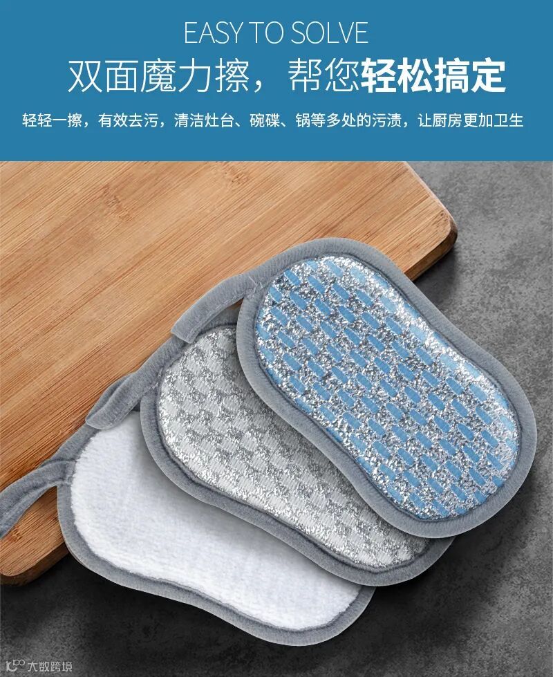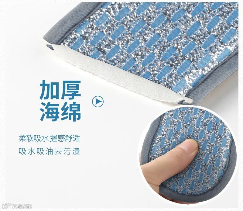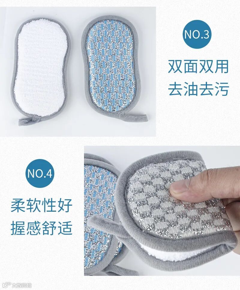 一面超细纤维:洗碗、盆、砧板、洗手池等 一面摩擦面:灶台、锅具、不锈钢焦黑、发黄等