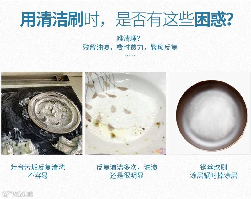 生活中,厨房是最脏的地方,用懒人抹布、洗碗巾擦拭灶台焦黑,焦黄的锅具,抹布没有摩擦力,擦不干净。用钢丝球擦,容易伤锅具,不粘锅容易把不锈钢的涂层锅给擦掉,就变成粘锅厨具了~