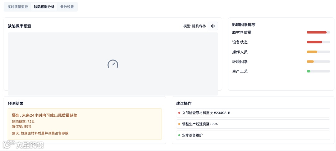 该界面展示了AI在质量管理中从“事后检测”向“事前预测与预防”的转变。它不是等待缺陷发生,而是提前预警。 - 数据驱动决策: