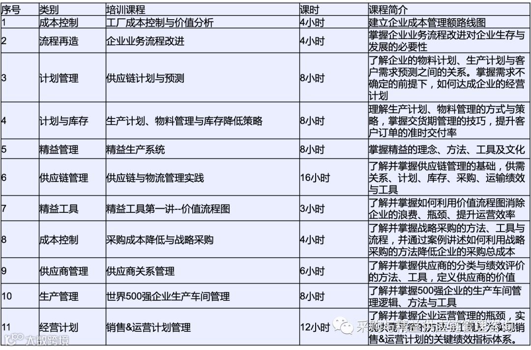 采购与供应链管理、企业信息化、精益生产培训与咨询