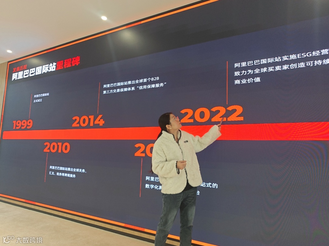 她结合生动的演示文稿,带领同学们穿越时空,回顾了中国外贸数字化领航者——阿里巴巴国际站自1999年成立以来的光辉历程。从最初的信息平台,到2014年推出第三方交易保障体系“信用保障服务”,再到2022年全面实施ESG经营理念,致力于为全球买卖双方创造可持续发展的商业价值,一幅波澜壮阔的数字贸易发展画卷在同学们面前徐徐展开。