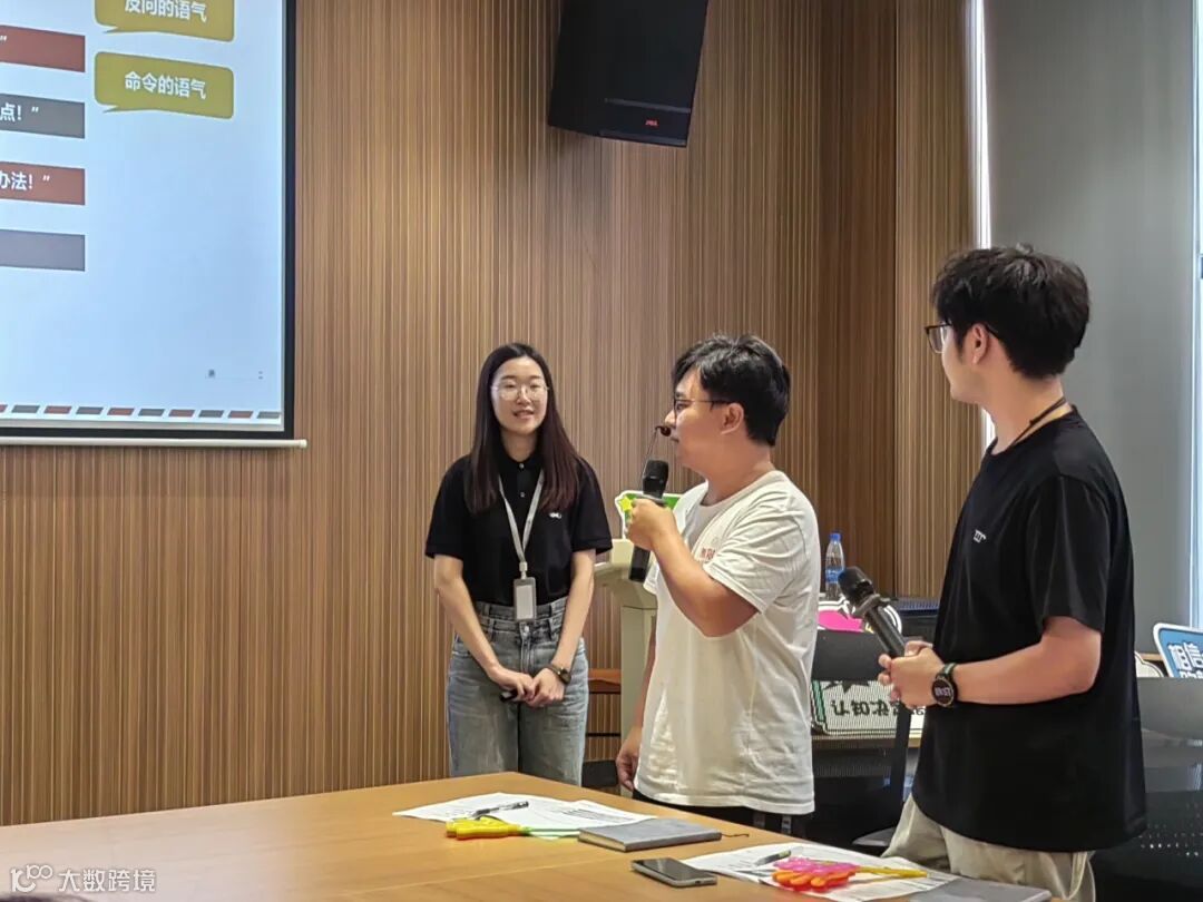 在本次培训中,聂老师首先通过互动游戏,与在场学员建立共识,明确沟通是个人之间在人际交往中彼此交流思想、感情和知识等信息的过程,是信息在个人间的双向流动。接着,以“理论+实操演练”的形式,让学员通过身临其境的情景模拟,感受令人讨厌的说话语气,并分析每种说话语气让人心生抗拒的底层原因。