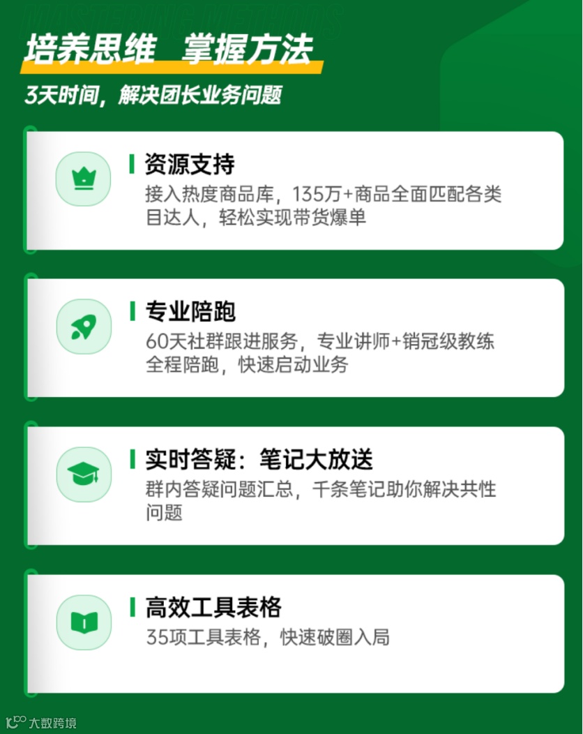 3天实战课程,高密度干货全天候输出,一线业务导师天团集结,系统性解析抖快Top团长——热度电商的业务全模式。一次性帮你搞定【招商+产品池策略】+【推品+业务流体系】+【团队+高人效制度】+【财务模型】四大关键学习模块,一键复制落地,回去就能拿结果。