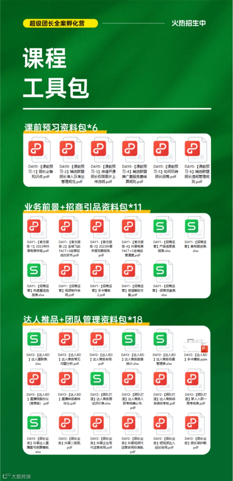 团长业务的核心原理、找到商家的N条渠道+N种沟通方法、高效建联话术拆解、健康可持续的商品池打造方法、与商家的N种合作模式、达人分销矩阵布局、样品寄、到、播任务流管理、推品质量管理方法、招商+BD团队搭建与管理、企业整体经营与业务放大、各系统后台现场实操与答疑......