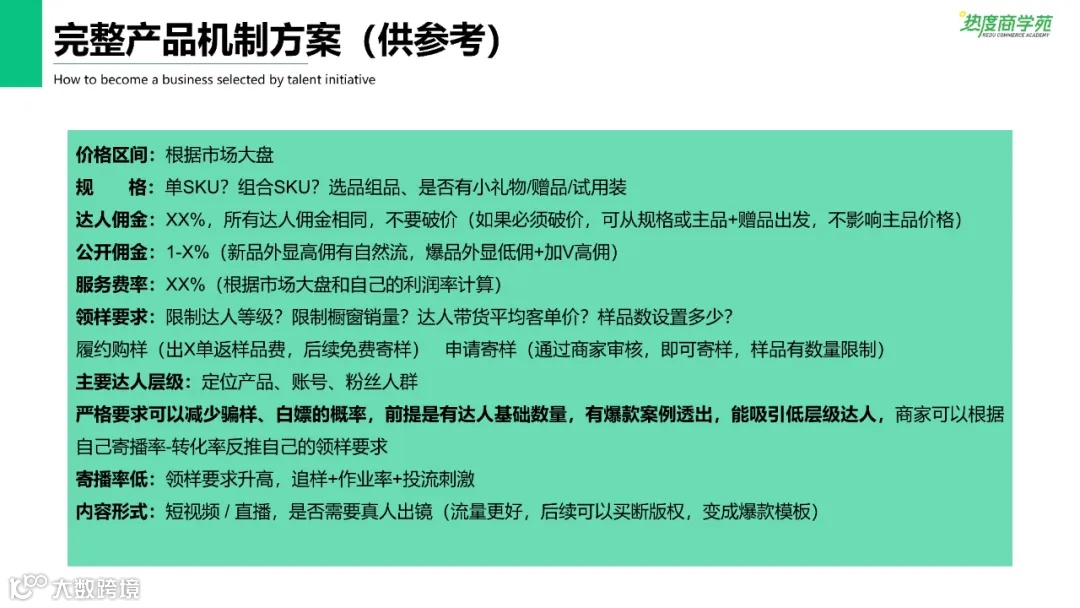 达人合作是分销的开始,而不是结束,如何确定与达人的合作方案、后续如何衡量带货表现、适当的激励措施都是什么样的,课程中有非常详尽的案例解析。
