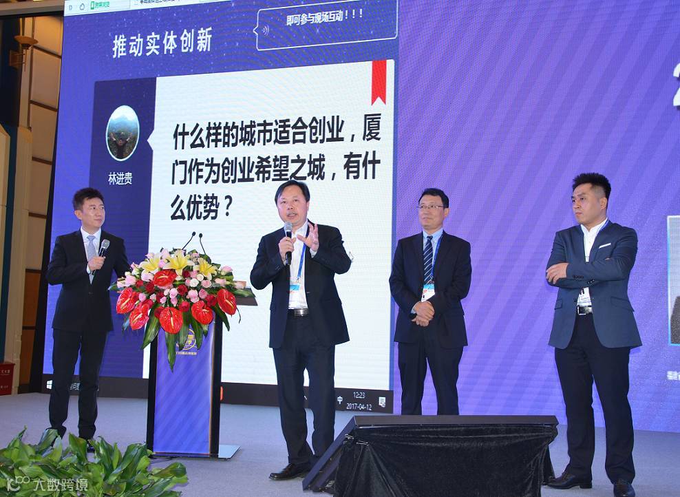 12日上午,由厦门市人民政府指导,厦门日报社联合多个相关部门主办的2017厦门创新创业千人论坛在会展中心顺利举行。优客工场创始人毛大庆、阿里巴巴集团副总裁刘松、美亚柏科董事长滕达等多位知名大咖齐聚一堂,以“把握前沿机遇,推动实体创新”为主题进行演讲与对话,奉献一场精彩的思想盛宴。弘信创业工场投资集团高级副总裁、云创智谷(北京)科技有限公司首席执行官、厦门云创智谷董事长李震应邀出席会议,并对话“城市创业环境与创新基因长成”。
