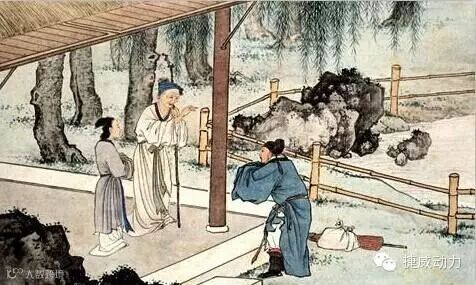 苏轼落座喝茶,和道士很随意地交谈了几句。几番言语,道士发现来客气度不凡,马上请苏轼进入大殿,摆下椅子说:"请坐!"然后又吩咐童子,"敬茶!"