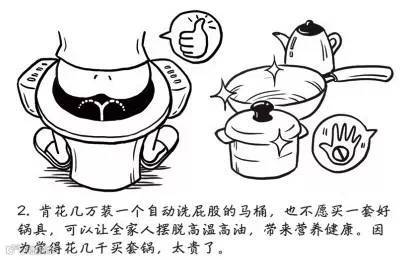 肯花几万块装一个自动洗屁股的马桶,也不愿买一套好锅具,可以让全家人摆脱高温高油,带来营养健康,花几千买套锅,太贵了。