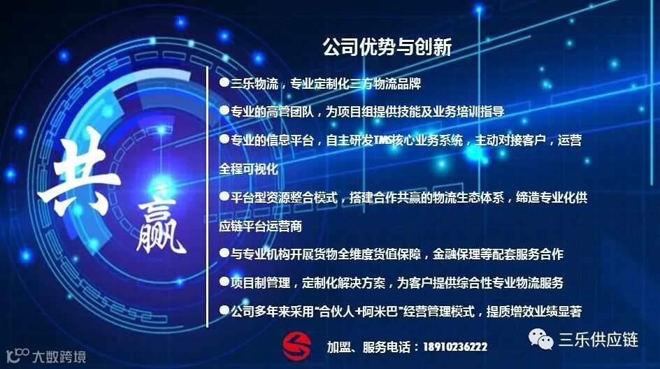 三乐物流定位打造“新型的三方物流智能、高效、共享的服务平台”,在为客户提供供应链全程可视化服务的同时,也积极推进赋能中小型同行伙伴,欢迎各位的加入与合作!