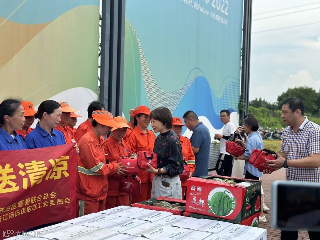 连日来持续高温天气,面对高温酷暑,奋战在一线的职工依然坚守岗位,为社会稳定和高质量发展保驾护航。为切实保障广大职工在盛夏高温季节的安全健康,7月21日上午,正值中伏的第一天,浙江汤氏供应链工会委员会联合西湖区慈善联合总会一起组织开展了“护航亚运、夏送清凉”活动,对在高温酷暑下仍然坚持奋战在一线的环卫工人、交警、民警等展开了亲切慰问并送上防暑包、解暑西瓜、矿泉水等清凉物资。