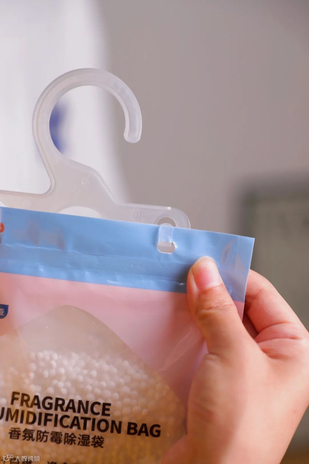 使用方法真的超级简单,撕开外包装袋子会看到产品和挂钩,把挂钩卡在除湿袋上就好啦!