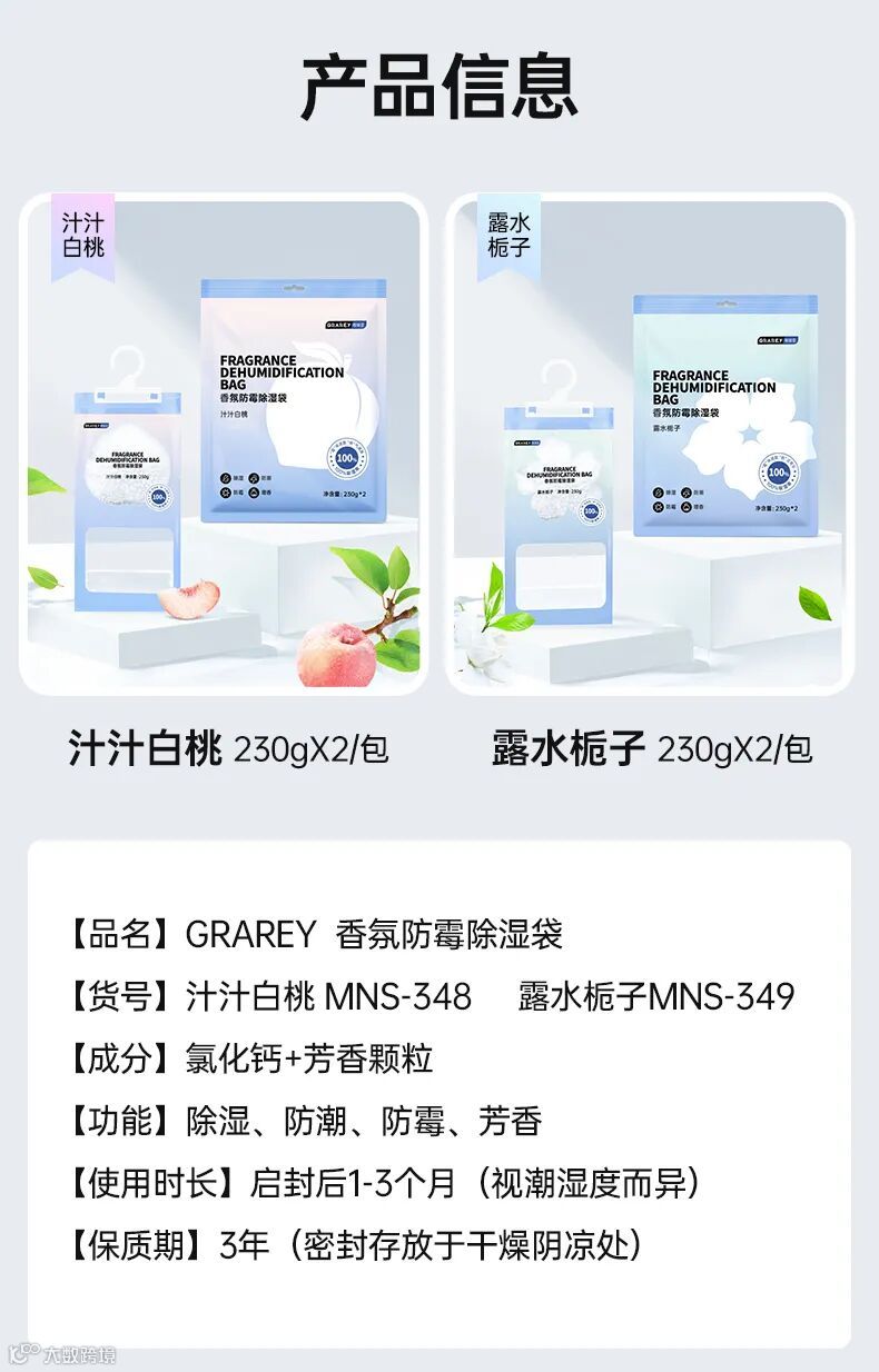 因此选择一个合适的除湿产品是非常关键的。今天大家推荐一款除湿神器——【GRAREY香氛防霉除湿袋】。