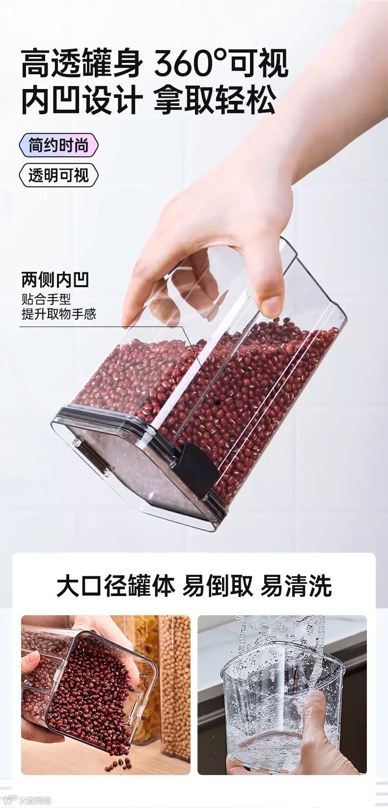 全透明罐身,装各种杂粮豆类,余量一览无余,拿取分类清晰明了。
