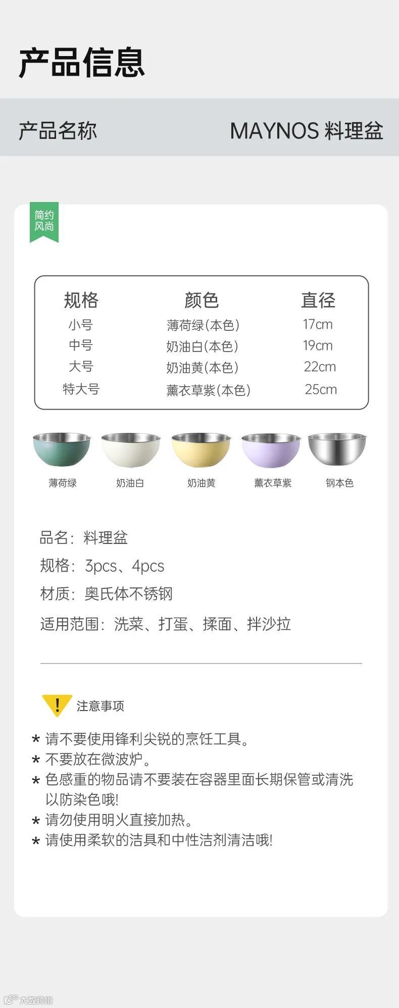 今天给大家推荐【MAYNOS不锈钢沙拉盆】