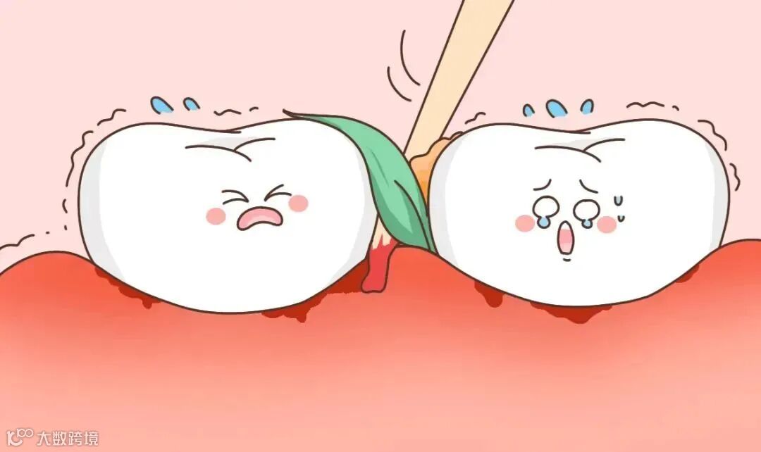 结果肉丝没弄出来,牙龈已经被捅得又红又肿,鲜血淋漓。