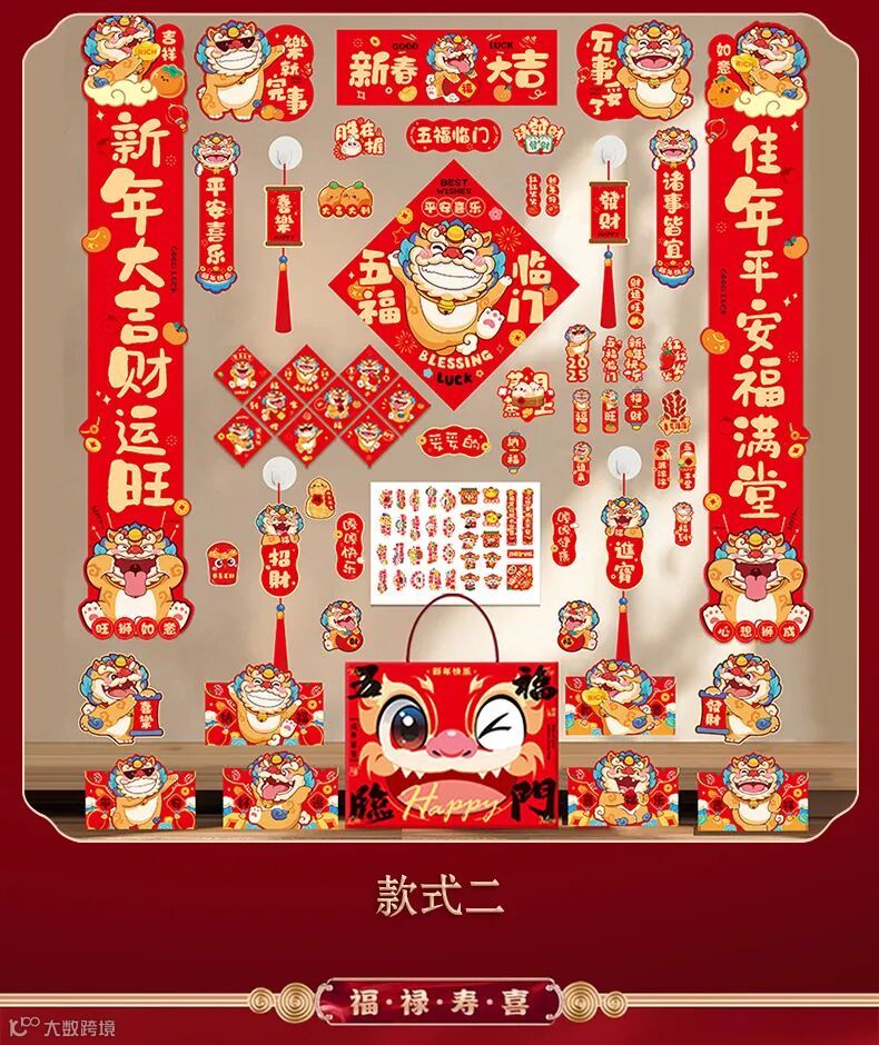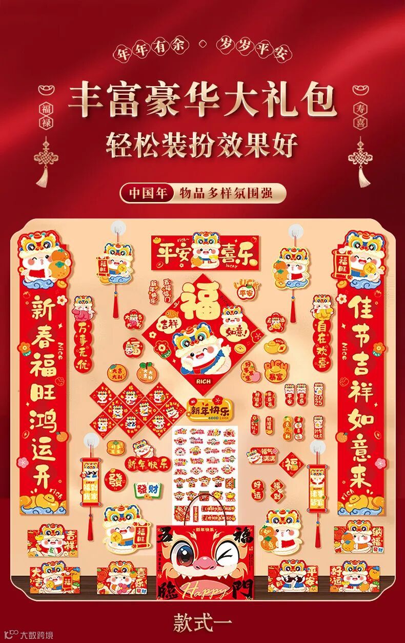 包含对联、红包、福字、窗花、生肖挂件等,到手一大包!