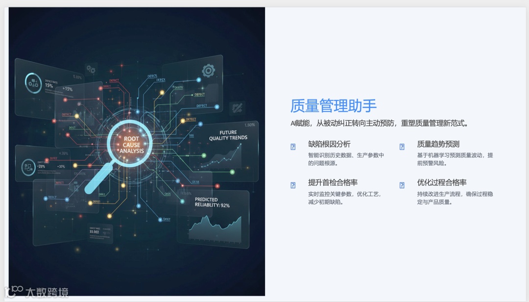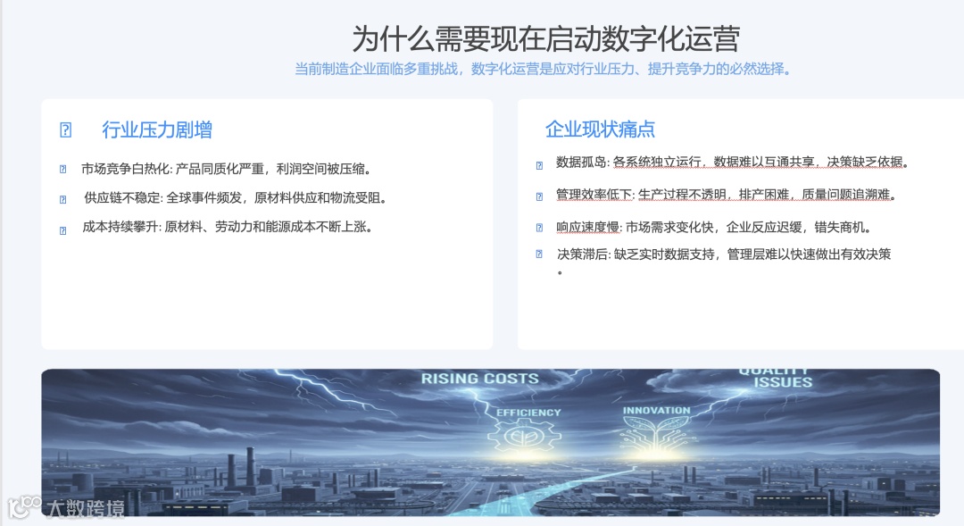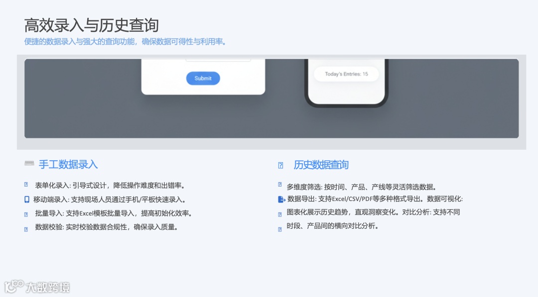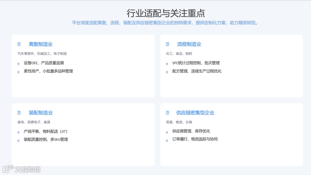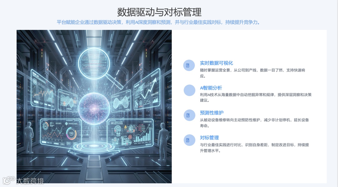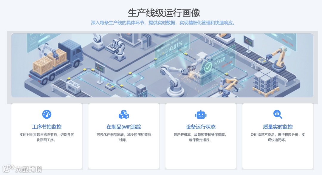 提供多维度、预置化报表的管理平台,重点覆盖了生产制造过程中的效率、质量、成本和设备管理。通过一个可视化的制造业仪表板,系统能够直观地呈现关键业务数据和趋势,帮助管理层快速掌握企业运营状况,并支持进行科学决策和持续改进: