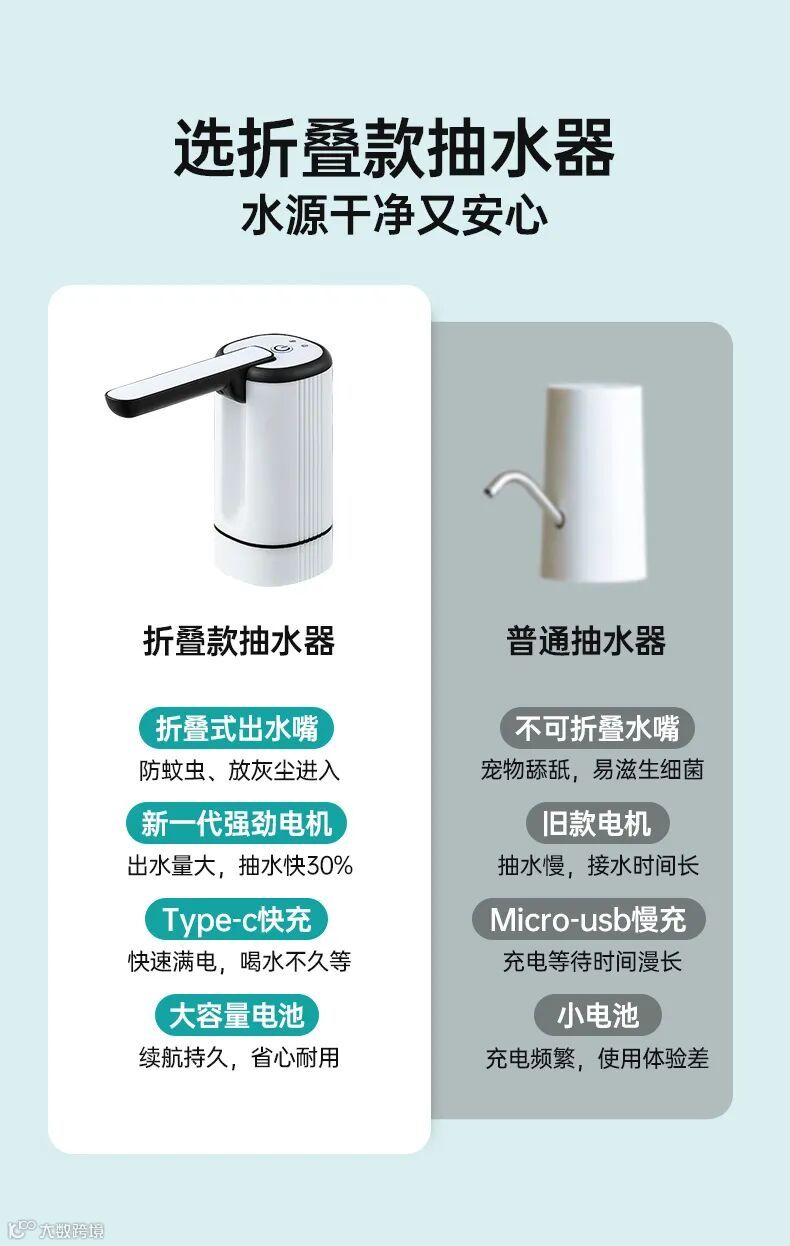 而普通的抽水器出水口外露,易造成饮用水撒漏,且很容易有灰尘进入,严重影响饮水健康❗️