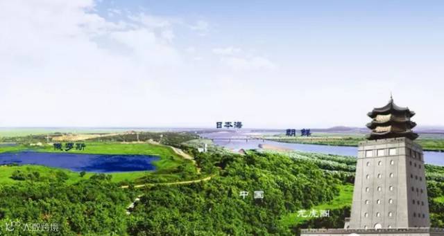 俯视东南,俄罗斯哈桑镇近在咫尺;