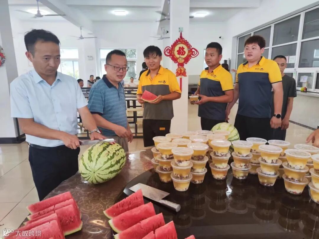 2023年7月26日,县邮管局蔡局带领管局的工作人员为在太阳炙烤下,默默工作的一线职工送来了精心准备的清凉汤和西瓜,嘱咐大家在工作时注意防暑降温,为大家带来了一丝清凉、一丝关爱。