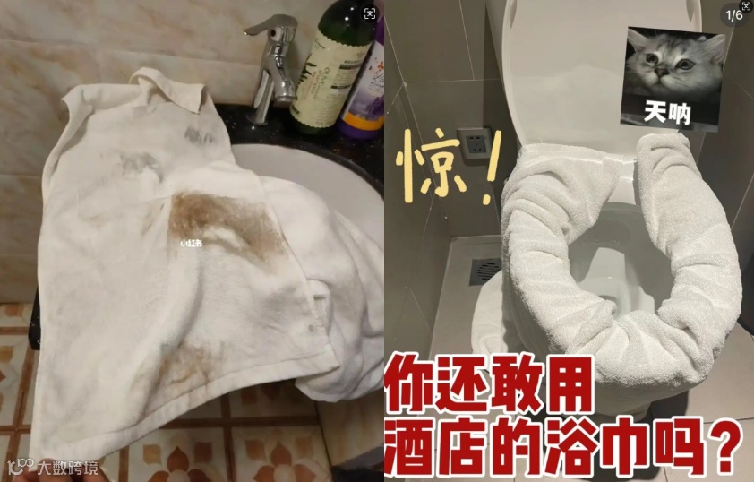 早前有网友入住某酒店,发现住客疑似用客房毛巾清洁卫生。