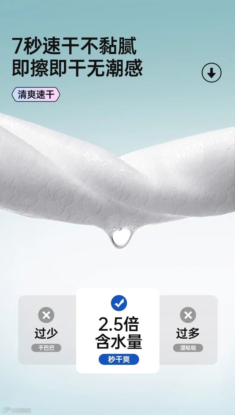 既保证了它的柔润度,也不会让pp太潮湿,用起来清爽如水洗。