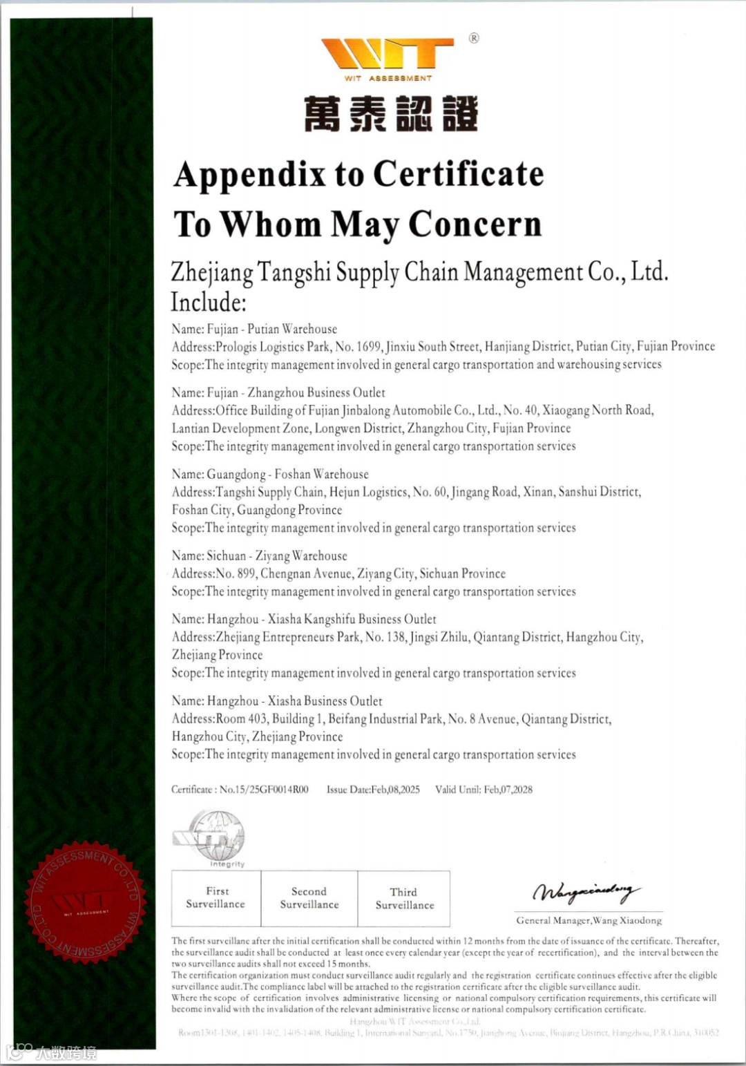 总之,四体系认证的取得是汤氏供应链发展历程中的一个重要里程碑,也是公司未来持续发展和创新的重要基础。汤氏将以此为契机,不断深化诚信文化建设、优化服务流程、创新技术应用,致力于构建更加紧密、高效的供应链生态体系,为客户提供更加优质的服务体验。
