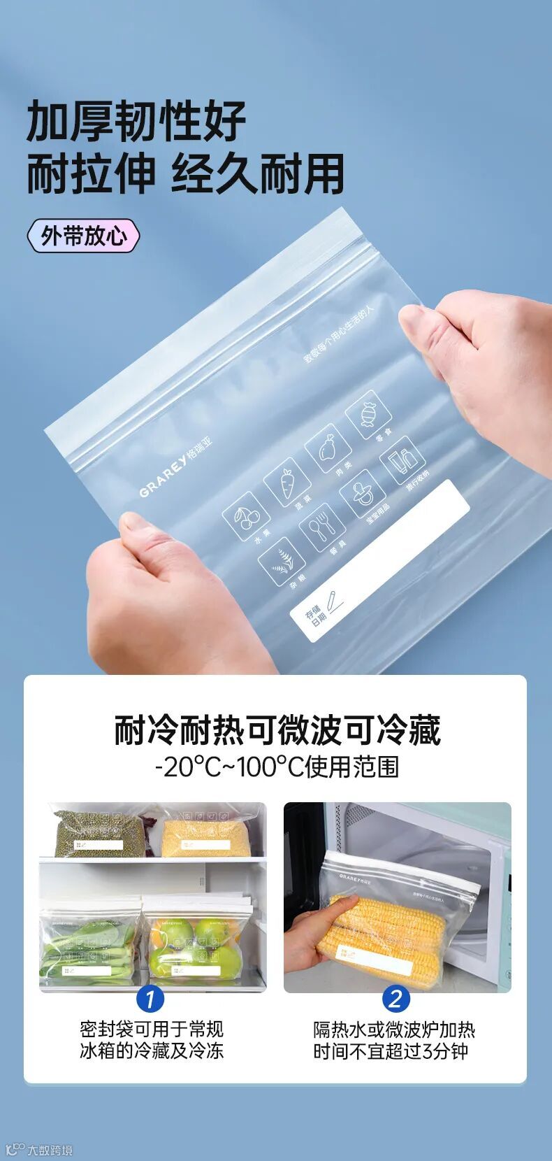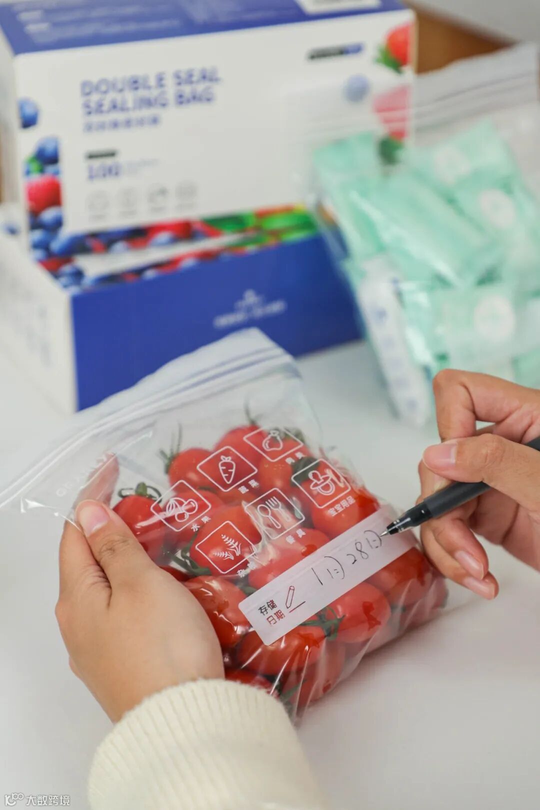 半透明矩形框可标日期,白色透明袋体,让东西一目了然,冰箱从此不再乱糟糟