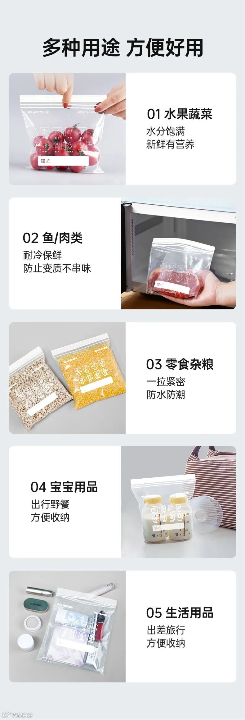 实打实的厨房消耗品,分装蔬菜、水果、保鲜都离不开它,不同于传统保鲜袋,-20度冷冻可用,专为速冻生鲜而生