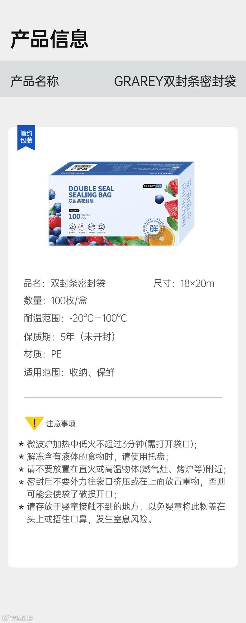 GRAREY 双封条密实袋,一盒100枚!双面加厚,可重复使用!