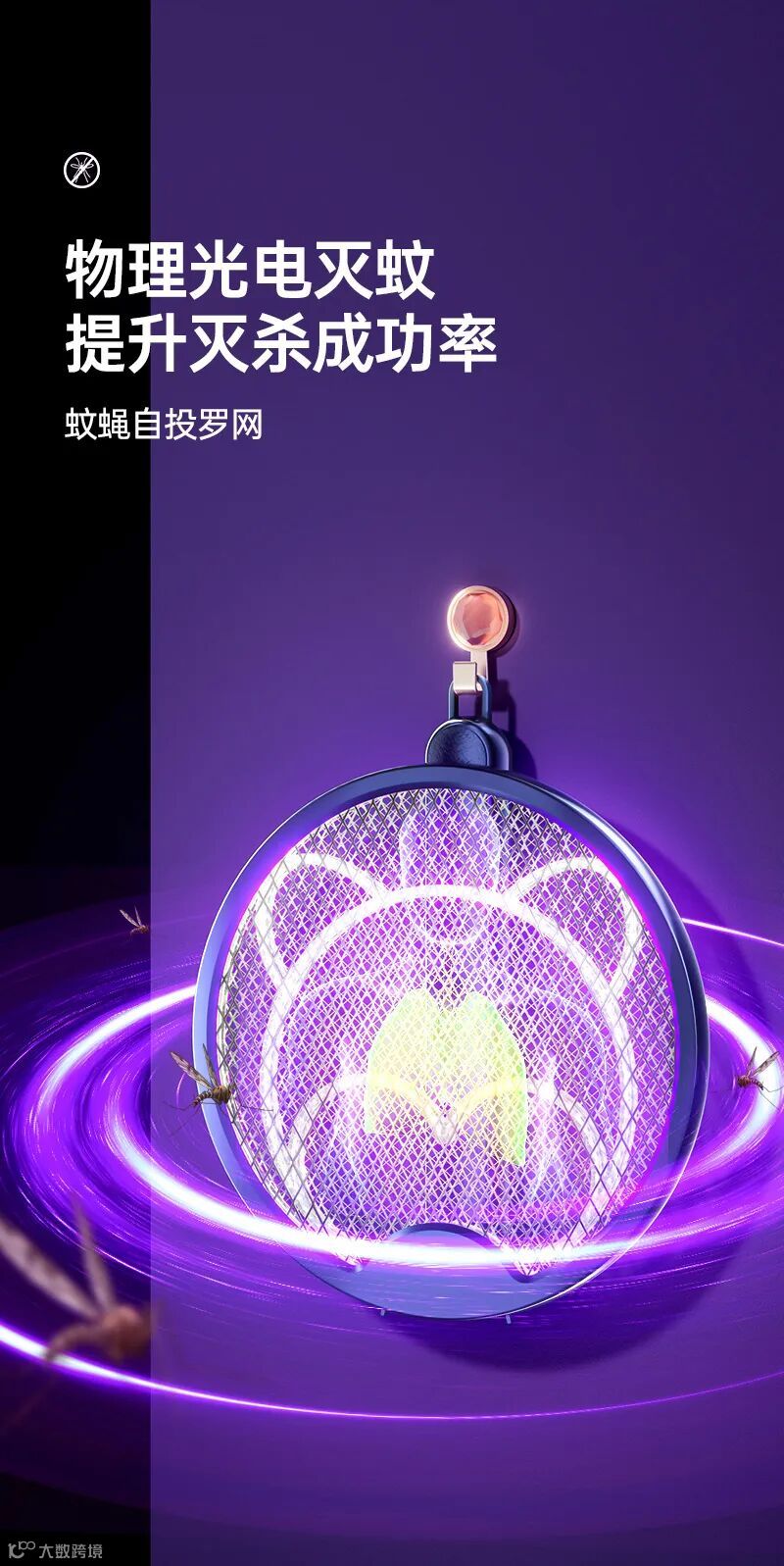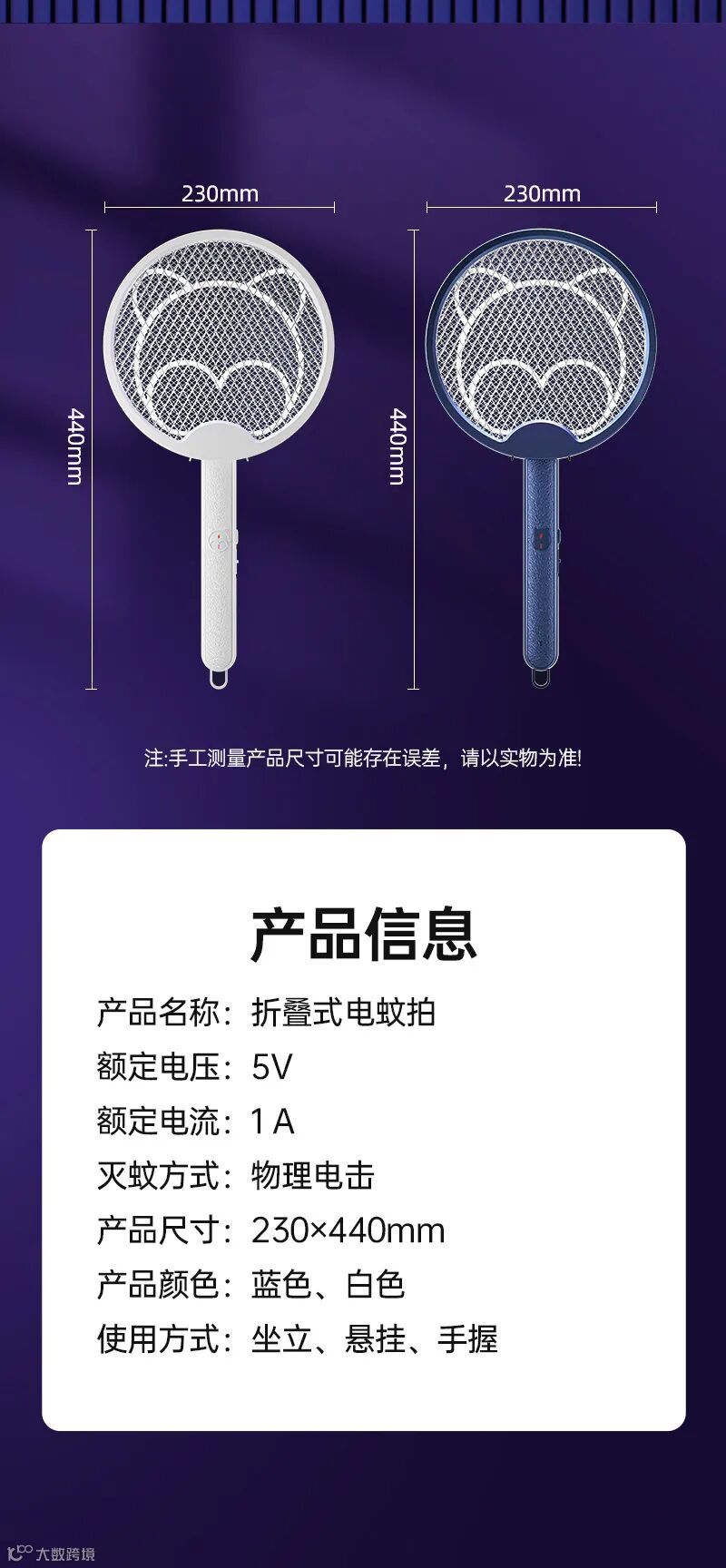 🔘自带USB充电线,可折叠收纳,手持、桌面、挂壁随意切换,让蚊子无处可逃~
