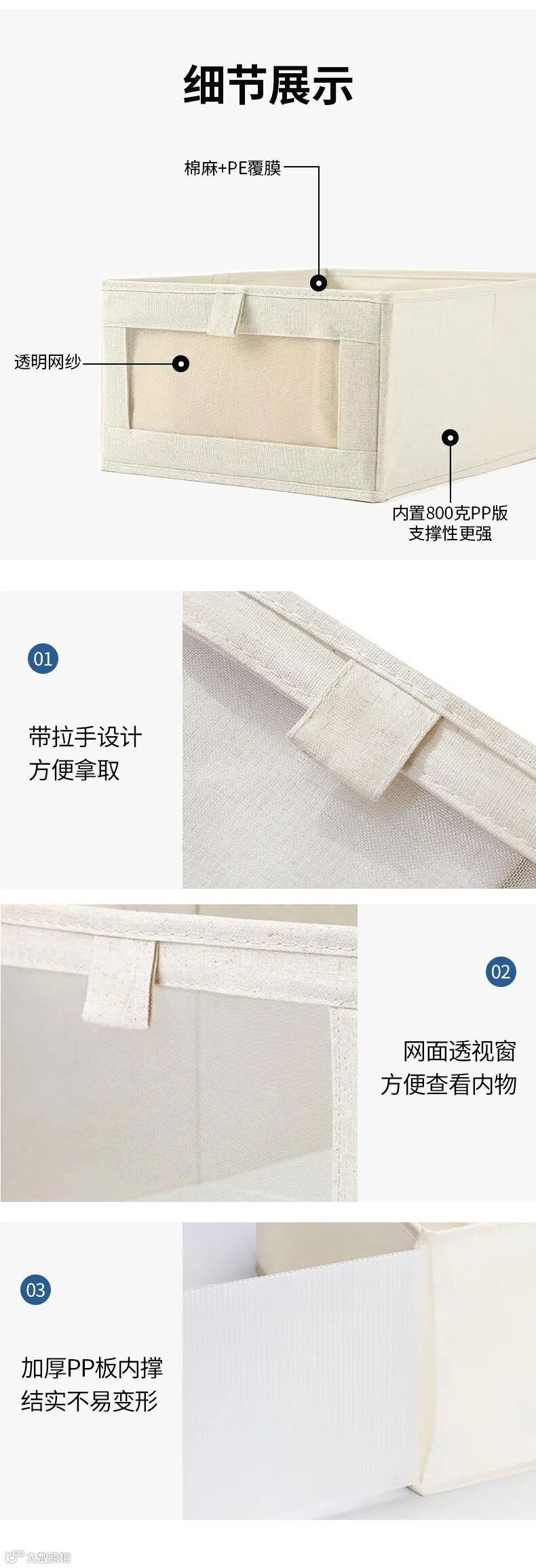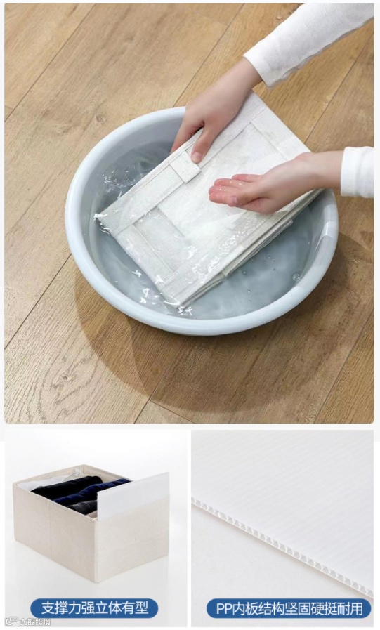 加厚PP板内撑,结实不易变形;亚麻,结实耐用;