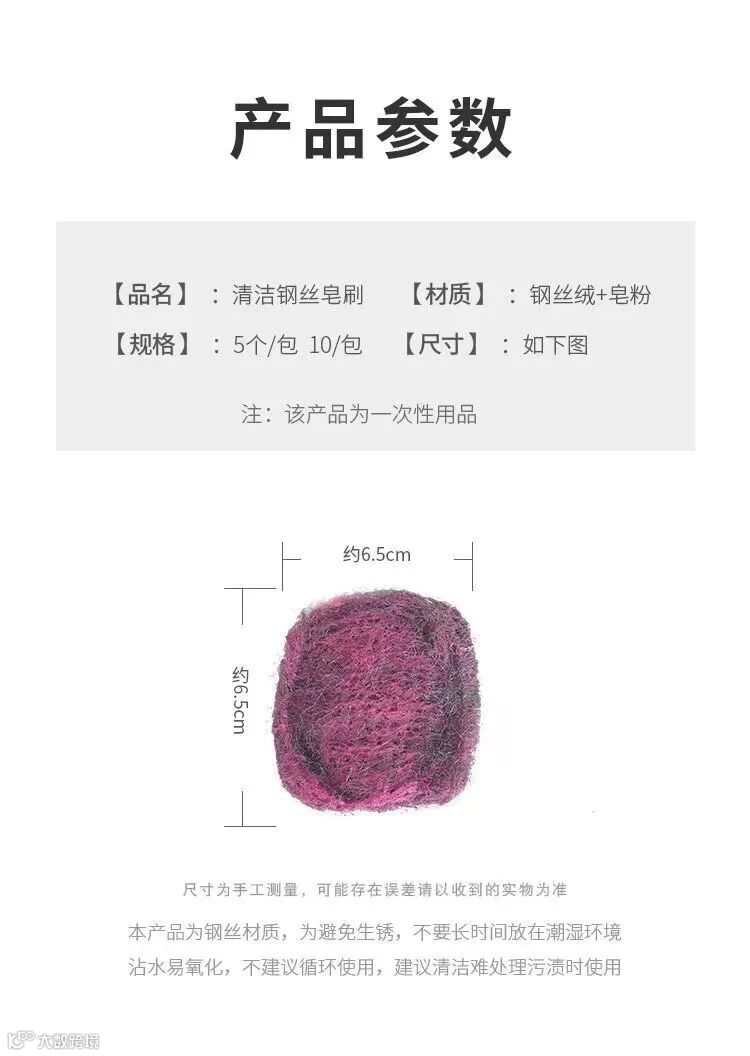 售后说明:我们这款出口欧洲的皂刷表面有一层可降解的粉色魔力清洁粉,类似于洗洁精,能够应付严重的油污和大多数的污垢。客户收到后,内袋会有轻微掉粉现象,是属于正常现象,不属于质量问题(介意者勿拍)!盒子不在售后范围内~
