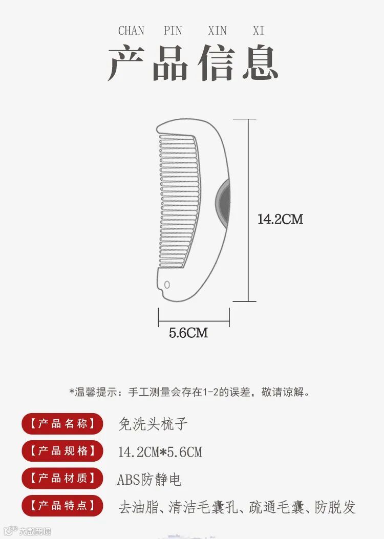 3. 物理洁发,养生护发,梳齿中空U型设计