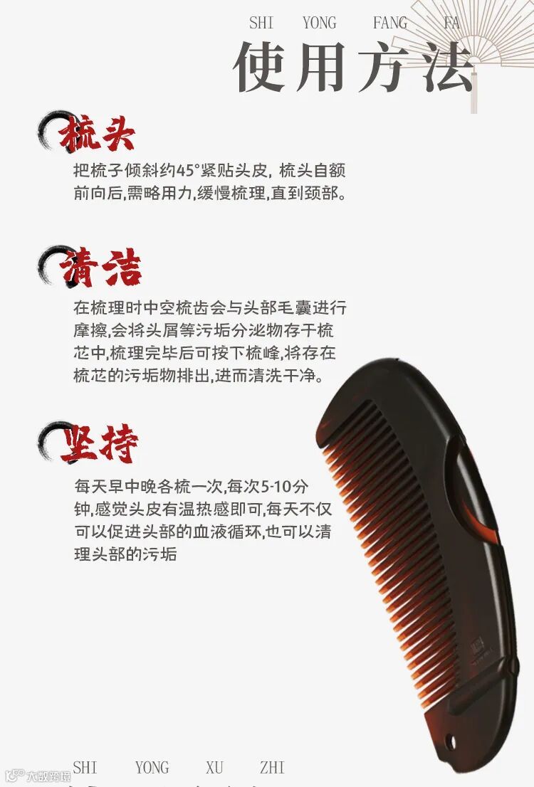 经常梳头,能起到按摩作用,使头部经络气血通畅,促进诸阳上升,百脉调顺,因此选择一款好的梳子非常重要。