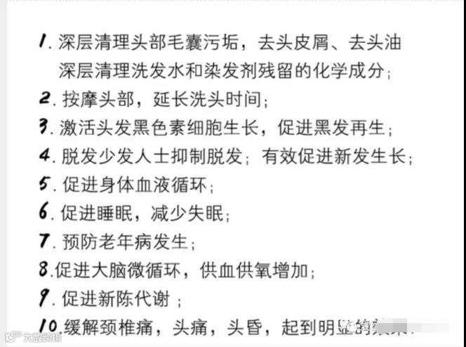 能够帮助促进循环、按摩毛囊、强根健发,清洁头皮,以及深层清理头部毛囊污垢,去屑,去油,深层清理洗发水和染发剂残留的化学成分!