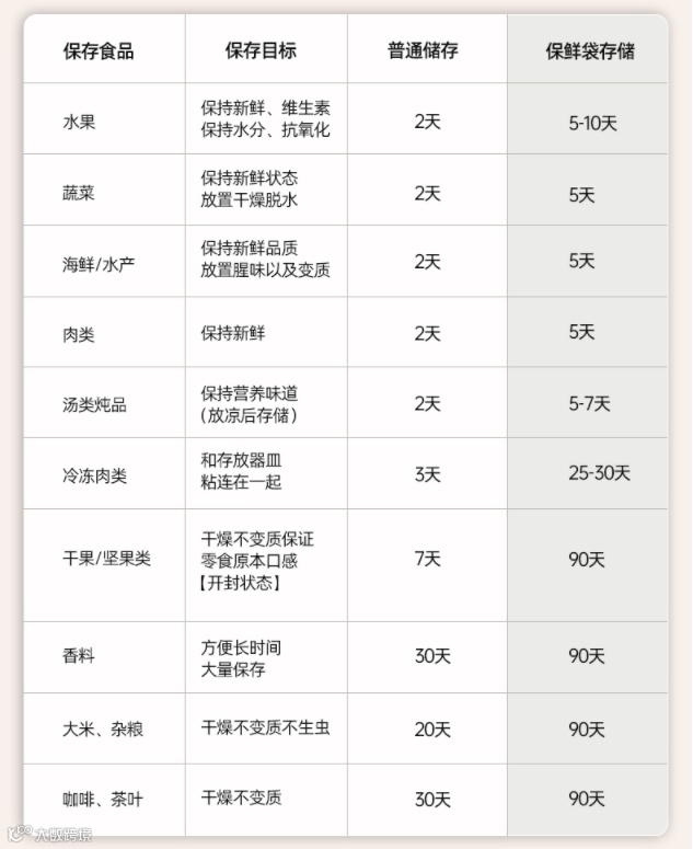 针对不同食物,滑锁袋的保鲜效果,对食物的时间作用!