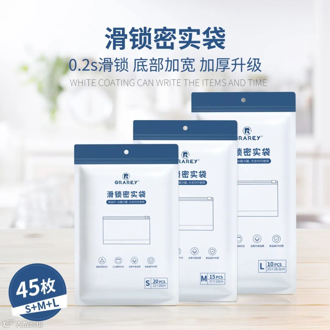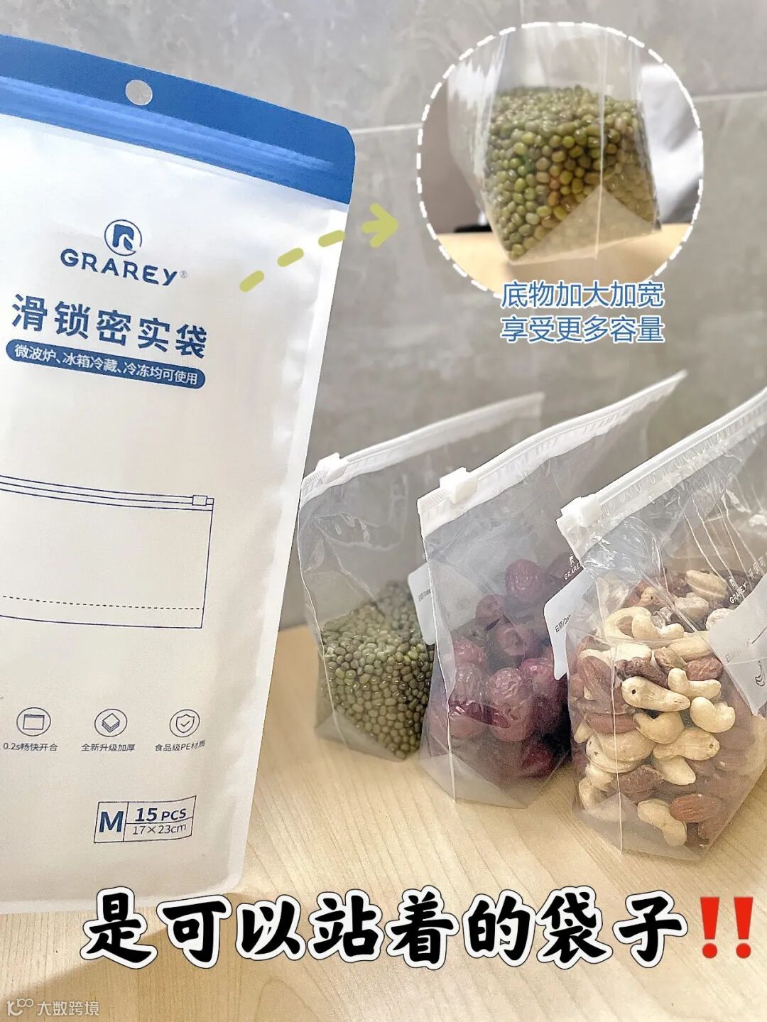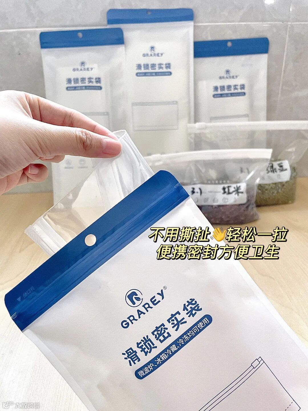今天小编就给大家推荐一款适合装食物、安全、方便,可水洗重复使用,而且自带封条的密封保鲜收纳袋——GRAREY滑锁密实袋!